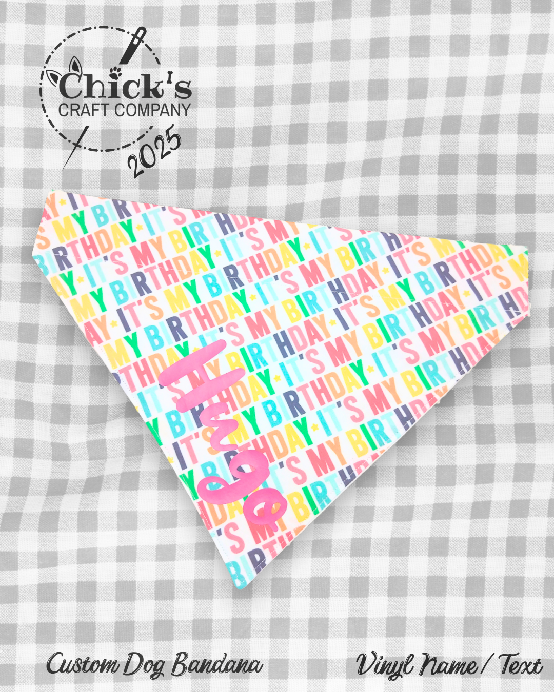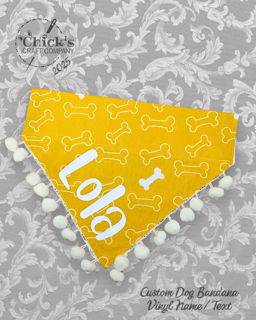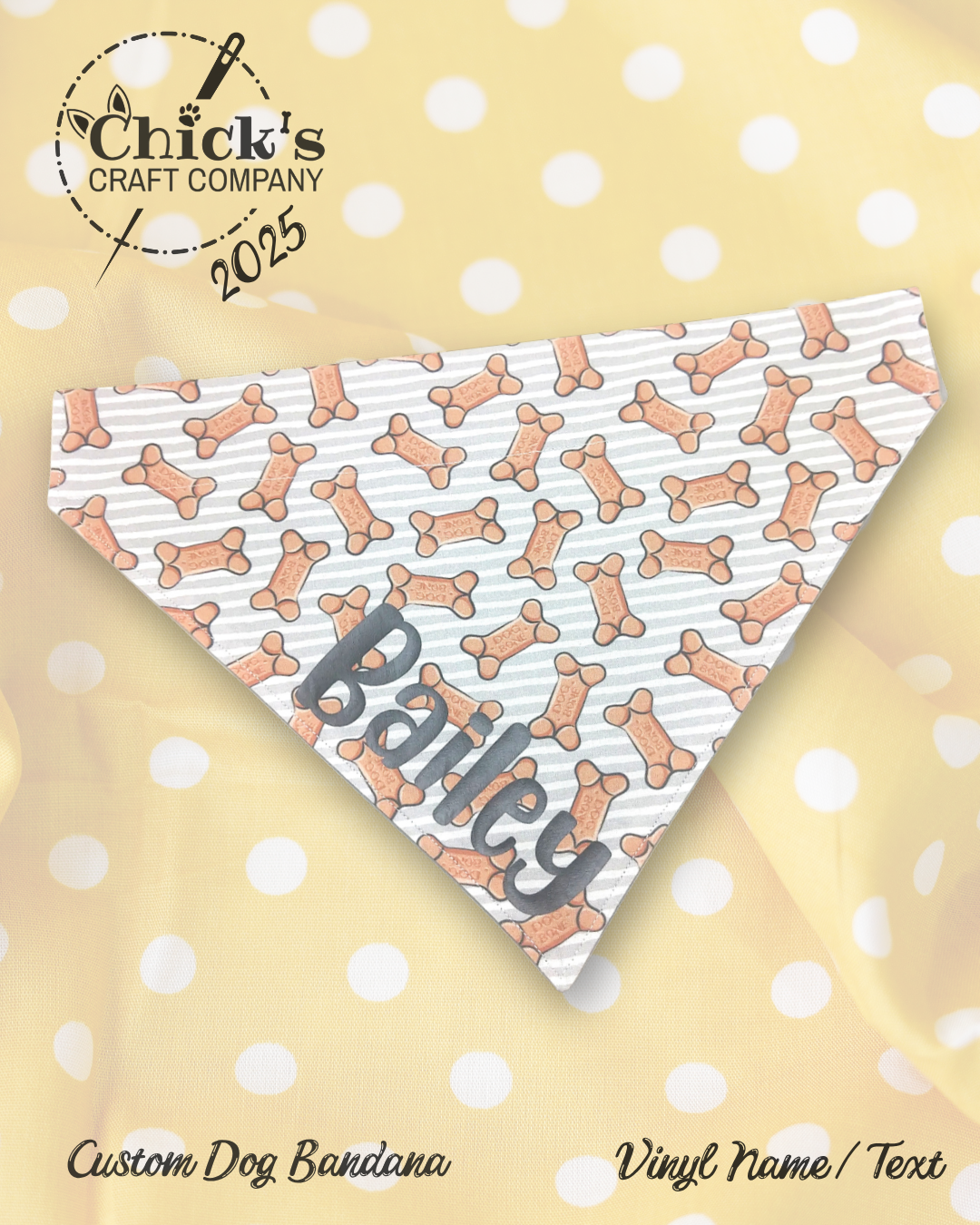 I can do SO MUCH cool stuff with my die cut machine! Currently, I’m offering HTV name personalization on any of the 200+ bandanas in my shop. I have 20 vinyl colors in stock and 18 cute fonts to choose from. There are SO MANY choices, and I love seeing the totally unique combinations customers design for their pets. I’m excited to see what YOU come up with!