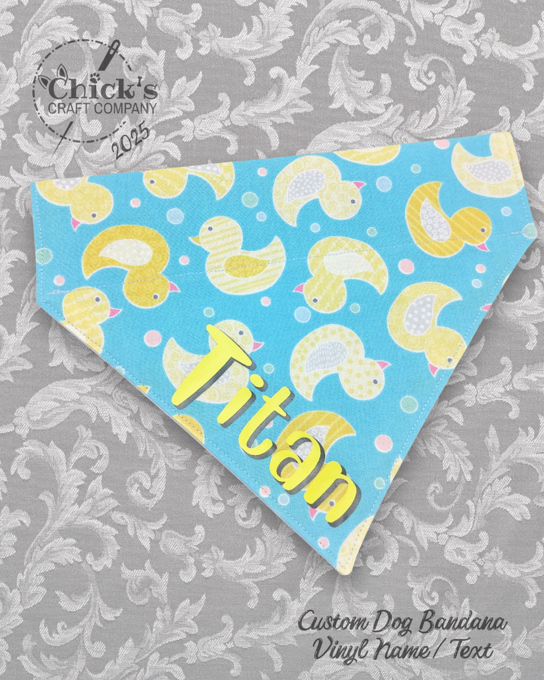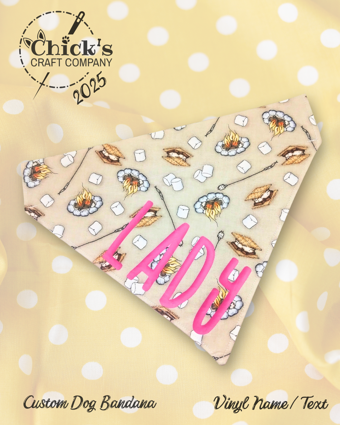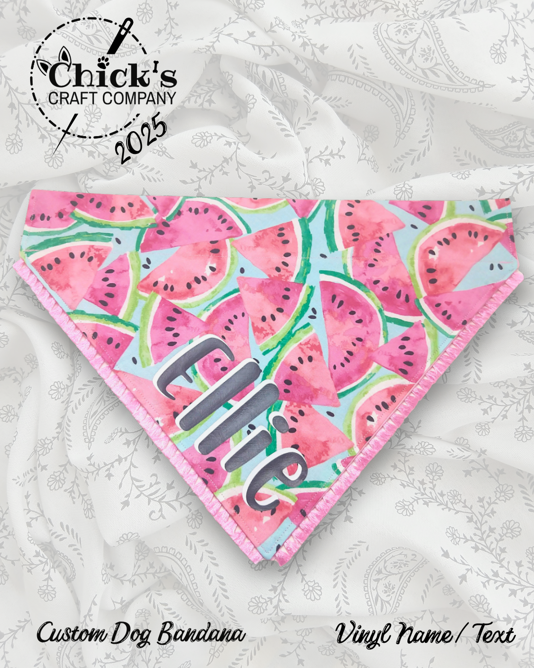 I can do SO MUCH cool stuff with my die cut machine! Currently, I’m offering HTV name personalization on any of the 200+ bandanas in my shop. I have 20 vinyl colors in stock and 18 cute fonts to choose from. There are SO MANY choices, and I love seeing the totally unique combinations customers design for their pets. I’m excited to see what YOU come up with!